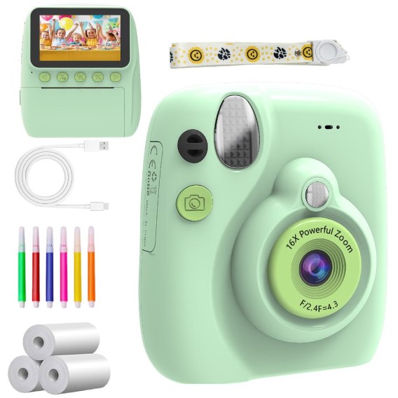 APARAT NATYCHMIASTOWY DLA DZIECI 16X ZIELONY Z AKCESORIAMI
