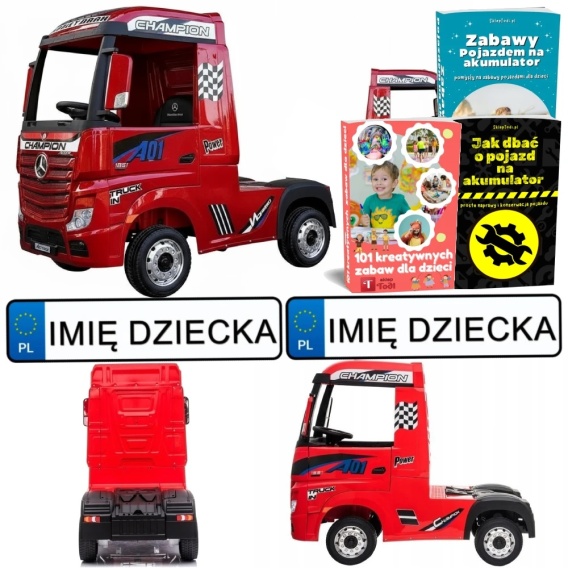 AUTO NA AKUMUALTOR DLA DZIECKA CIĘŻARÓWKA MERCEDES ACTROS 4X4 LAKIER MP4 PILOT SKÓRA EVA LED