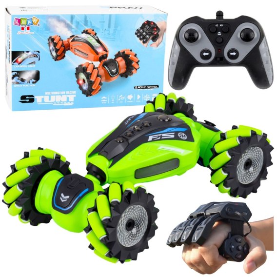Sterowanie odbywa się za pomocą kontrolera gestów w formie rękawicy oraz pilota, co daje pełną kontrolę nad pojazdem i umożliwia wykonywanie różnorodnych manewrów. To idealny wybór dla każdego fana nowoczesnych zabawek RC.