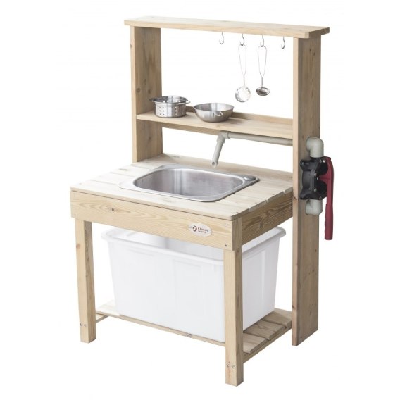 Przepiękna Drewniana Kuchnia Outdoor od renomowanej marki zabawek drewnianych Classic World to świetna propozycja dla dzieci, które lubią wcielać w różne role osób dorosłych podpatrzonych w życiu codziennym. Drewniana zabawka pozwoli na odgrywanie ról, wpłynie także pozytywnie na integrację z innymi dziećmi poprzez wspólną zabawę oraz nauczy odpowiedzialności. Dzieci będą mogły poczuć że są prawdziwymi szefami kuchni, a zabawa w przygotowywanie potraw dla całej rodziny nie będzie miała końca. W kuchni znajduje się miejsce, aby podłączyć dopływ wody, wystarczy podstawić plastikowy pojemnik, żeby woda miała, gdzie spływać.