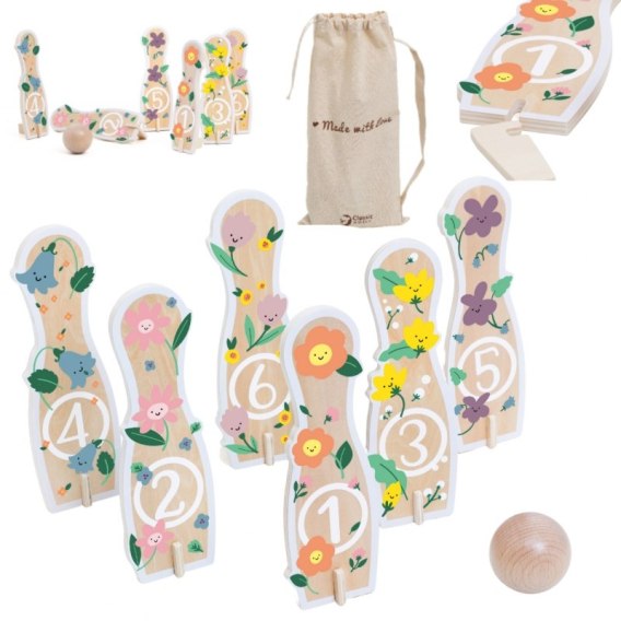 Drewniane kręgle Classic World to doskonała gra zręcznościowa, która zapewni dzieciomgodziny świetnej zabawy. Kolorowe kręgle w kształcie kwiatów i piłka do rzucania rozweselą maluchy i zachęcą do aktywności fizycznej. Wykonane z wysokiej jakości drewna i pomalowanenietoksycznymi farbami, gwarantują bezpieczeństwo podczas zabawy. Idealna zabawka do wspólnej gry w gronie rodziny lub przyjaciół.