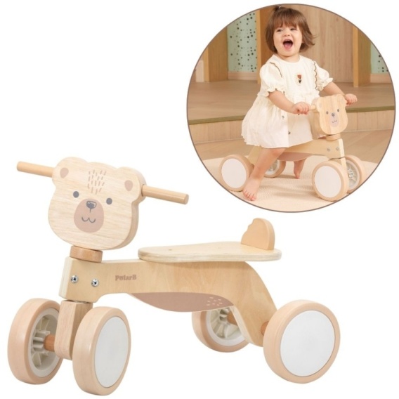 Drewniany jeździk trójkołowy to solidny i estetyczny pojazd zaprojektowany z myślą o najmłodszych dzieciach. Wykonany z trwałego drewna, z kierownicą w kształcie uroczego misia, zachwyca wyglądem i funkcjonalnością. Posiada blokadę skrętu kierownicy, dodatkową tablicę ochronną i cztery ciche koła EVA, które sprawdzą się zarówno w domu, jak i na zewnątrz.