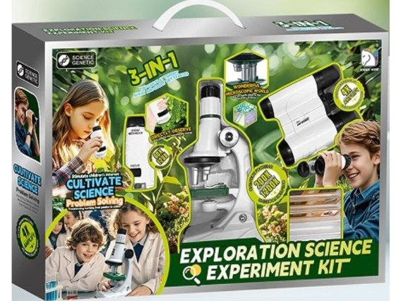 Edukacyjny zestaw naukowy, który łączy w sobie mikroskop, lornetkę oraz lupę. Jest to zabawka, której celem jest rozbudzanie ciekawości badawczej u dzieci. Z pewnością zapewni Twojemu dziecku sporo mądrej zabawy i satysfakcji z odkrywania tajemnic świata, a także pomoże mu rozwinąć naukowe pasje i pogłębi jego wiedzę.