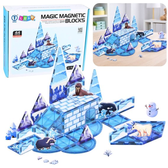 KLOCKI MAGNETYCZNE LODOWA KRAINA ZESTAW KONSTRUKCYJNY 44 ELEMENTY