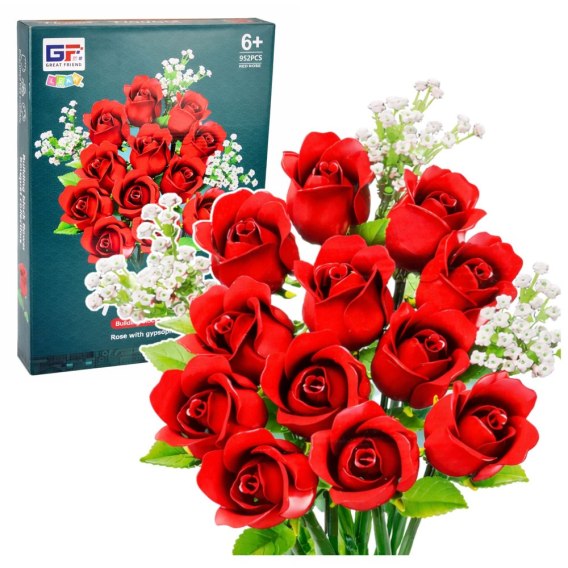 Klocki Konstrukcyjne Bukiet Kwiatów Czerwone Róże Gipsówka 952 el.