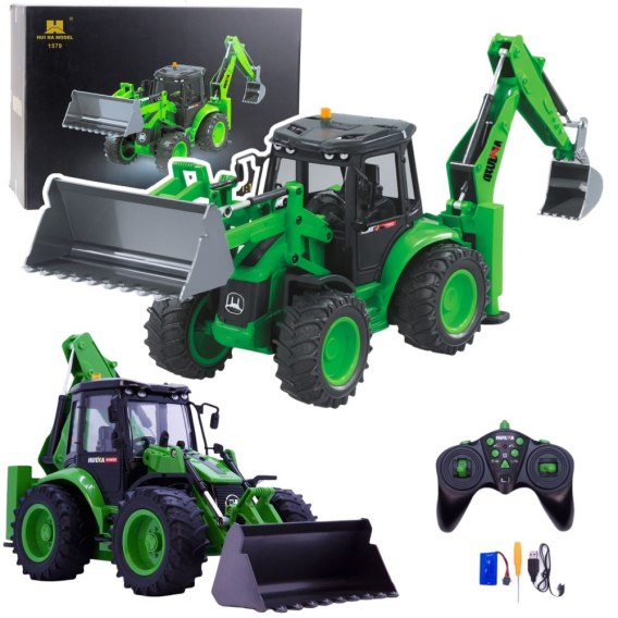 Koparko Ładowarka Zdalnie Sterowana RC Światła Dźwięk Zielona Huina 1:14