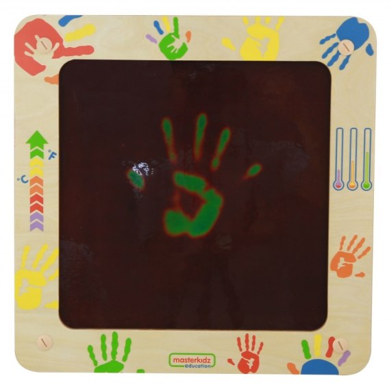 To niezwykłazabawka, która zachwyca dzieci swoimi kolorami. Kiedy dzieci przykładają do niej ciepłedłonie lub palce, na jej powierzchni pojawiają się kolorowe odciski, które znikają po kilkunastu sekundach. To ciekawy sposób na naukę o temperaturze i ciele ludzkim. Dzieci mogą sprawdzać, czy ich dłonie są cieplejsze czy zimniejsze od innych, oraz rysować na tablicy smugi i wzory. Tablica zmienia kolory pod wpływem ciepła, co pobudza zmysł wzroku i ciekawość dzieci.