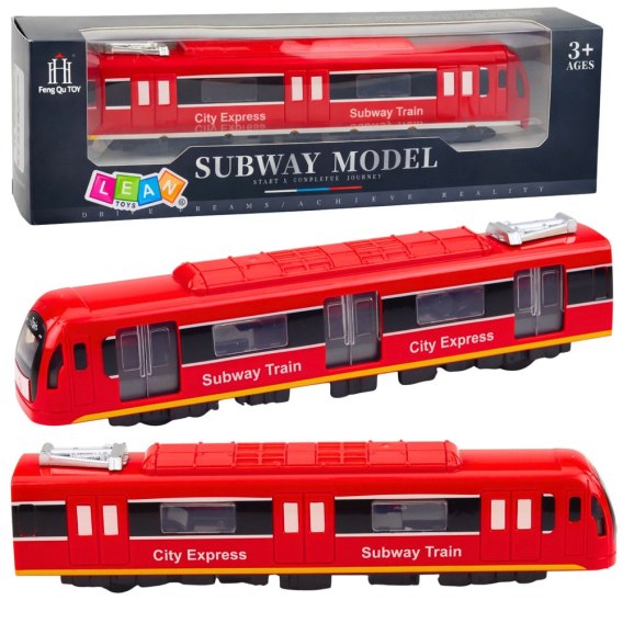 Czerwony pociąg metro City Express to realistycznie wykonany model miejskiego składu, który doskonale odwzorowuje wygląd nowoczesnych wagonów metra. Intensywny czerwony kolor w połączeniu z oznaczeniami Subway Train oraz City Express.
