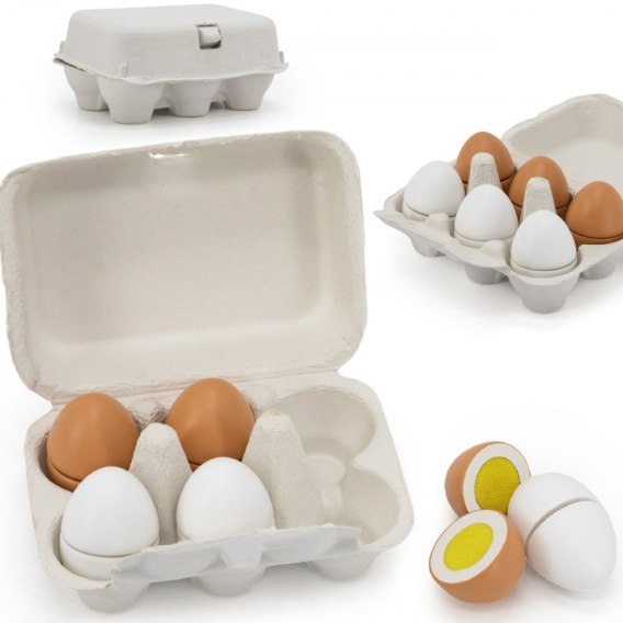 Dzięki jajkom dziecko może naśladować dorosłych i rozwijać zainteresowania np. kulinarne. Możne też bawić się w przygotowywanie posiłków dla innych. Nie ma obawy, że takie jajka się potłuką, czy „zepsują" więc można bawić się nimi bez końca. Zestaw przydatny jako wyposażenie dziecięcego sklepu, czy mini kuchni. Wszystkie jajka z zestawu połączone są ze sobą na rzepy i mogą być pokrojone podczas zabawy w małego kucharza.