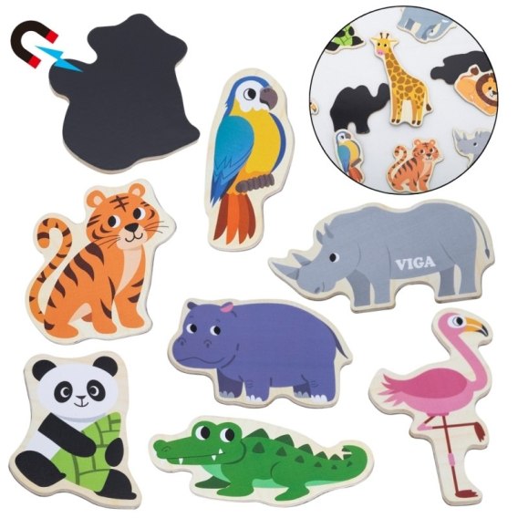 VIGA Drewniane Magnesy Dzikie Zwierzęta - Kolorowe Magnesy Edukacyjne 18M+