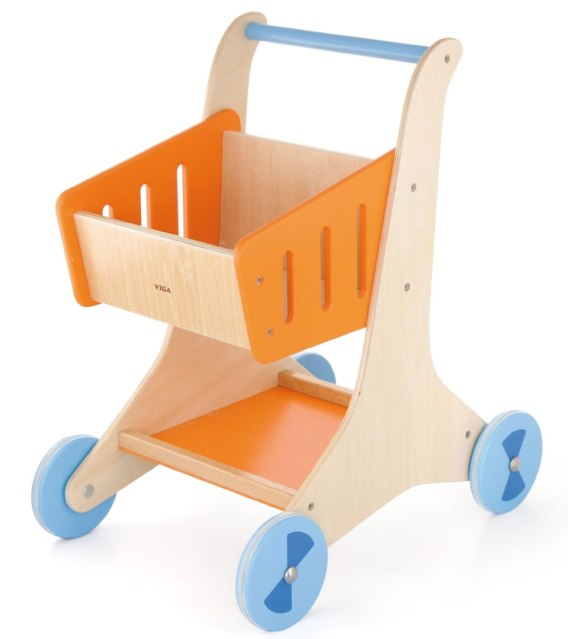 Drewniany wózek sklepowy od marki Viga to wyjątkowa zabawka, która zamieni dziecięcy pokój w prawdziwe centrum handlowe. Wykonany z wysokiej jakości drewna, wózek łączy w sobie trwałość i estetykę, oferując dzieciom bezpieczną przestrzeń do kreatywnej zabawy w sklep. Konstrukcja została zaprojektowana z myślą o najmłodszych użytkownikach - stabilna rączka ułatwia prowadzenie, a gumowe wykończenie kół zapewnia ciche poruszanie się i chroni domowe podłogi przed zarysowaniami. Wózek posiada pojemny, materiałowy koszyk oraz dodatkową dolną półkę, co pozwala na wygodne przewożenie "zakupów" lub ulubionych przytulanek.