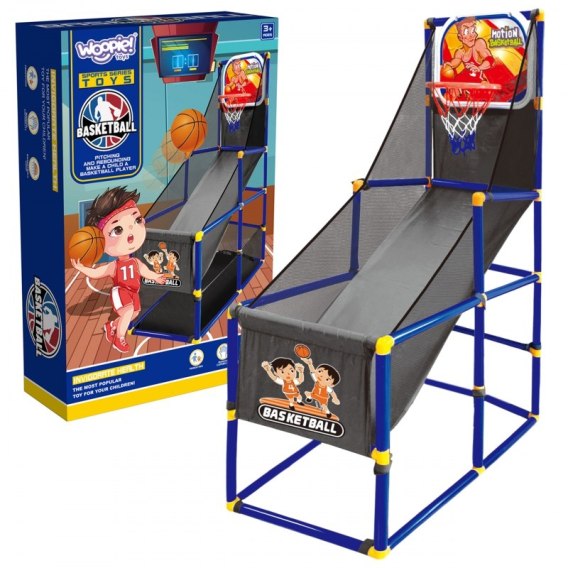 Stanowisko do gry w koszykówkę od marki WOOPIE, to dobrej jakości produkt, który umili twojemu dziecku normalną grę w koszykówkę. Dzięki starannie zaprojektowanej obudowie do umieszczonego na samej górze kosza, piłka twojego dziecka, po trafieniu w "tablicę" będzie łatwo dostępna do ponownego rzutu. Jeśli twoje dziecko uwielbia grac na dworze, właśnie ten zestaw sprawi, że nie będzie musiał szukać piłki po całym podwórku! Prezentowany produkt jest zestawem do gry w koszykówkę w domu oraz na zewnątrz. Zestaw odznacza się doskonałym projektem i wykonaniem z użyciem materiałów najwyższej jakości, co sprawia, że z pewnością posłuży Twoim dzieciom przez wiele lat.