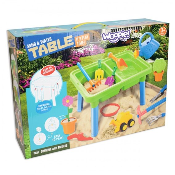 Stół Wodny 2w1Piaskownica od marki WOOPIE to doskonała zabawka, która zapewni dzieciom niezliczone godziny zabawy z wodą i piaskiem. W skład zestawu wchodzi aż 13 różnorodnych akcesoriów, takich jak: foremka, konewka, koparka oraz dwie łopatki. Stolik posiada dwa wgłębienia - jedno można wypełnić wodą, a drugie piaskiem, co pozwala na kreatywną zabawę w dowolnym miejscu. Zestaw idealnie sprawdza się zarówno w domu, jak i na plaży czy w piaskownicy. Ten wszechstronny zestaw umożliwia dzieciom tworzenie nieograniczonych scenariuszy zabaw, pobudzając ich wyobraźnię i rozwijając umiejętnościmanualne. Idealny do twórczej zabawy zarówno wewnątrz, jak i na świeżym powietrzu!