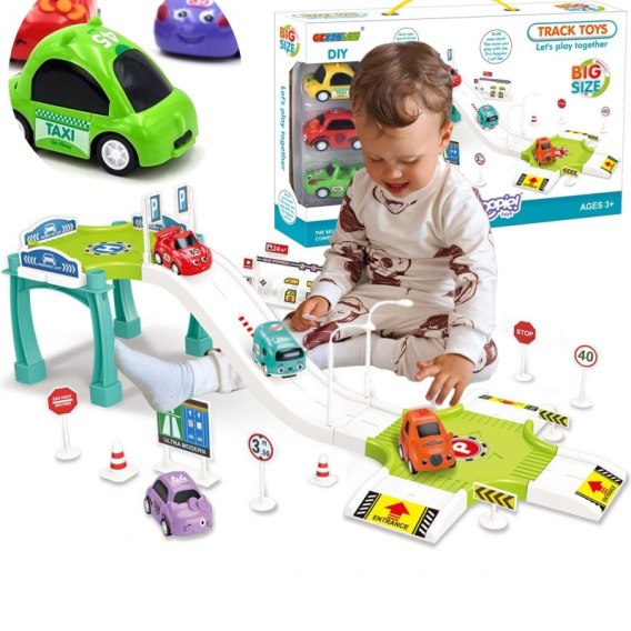 Tor Samochodowy od marki WOOPIE zachwyci każdego malucha. Maluch może jeździć 3 autami po stromej drodze i zaparkować na poziomie lub zatankować auto na stacji benzynowej. Dodatkowo w zestawie znajduje się wiele znaków drogowych, które urozmaicą zabawę. Akcesoria i wygląd torów są naprawdę realistyczne. Dziecko uczy się podstaw ruchu drogowego, co pobudza jego świadomość na przyszłość. Zabawka przez zabawę uczy! Tor gwarantuje wiele godzin zabawy!