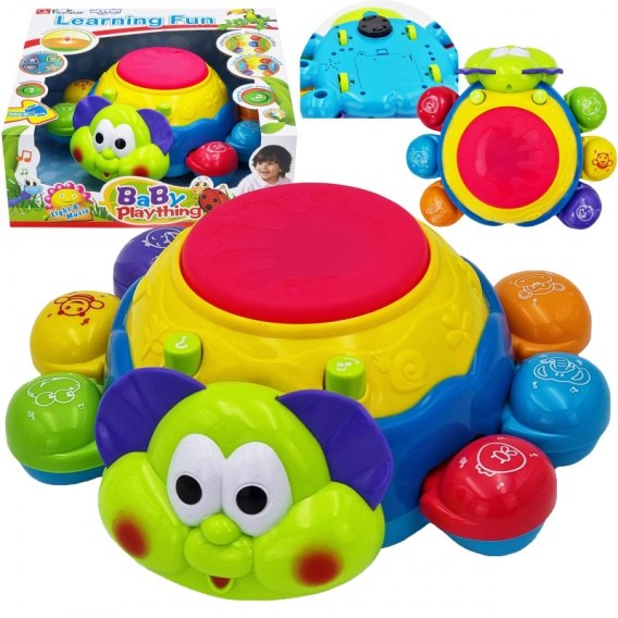 Zabawka interaktywna do raczkowania Biedronka od marki WOOPIE jest świetnym narzędziem do nauki pierwszych kroków. Zabawka jeździ i ucieka maluszkowi, by ten chciał zacząć się ruszać i ją złapać. Specjalny czujnik pozwoli Biedronce wyczuć przeszkodę i obrócić się w drugą stronę. Biedronka posiada liczne wartości edukacyjne. Każda nóżka posiada inny kolor i inne zwierzę do nauki z dzieckiem. Dodatkowo po naciśnięciu na nóżkę usłyszymy nazwę zwierzęcia i dźwięk z nim związany. Nazwy zwierząt są w języku angielskim co pozwoli dziecku przyswoić pierwsze słówka. Efekty świetlne i dźwiękowe następują po uderzeniu bębenka na górze zabawki. Zabawka rozwija dziecko od najmłodszych lat m.in. poprawia koncentrację, koordynację ręka-oko oraz umiejętności poznawcze.