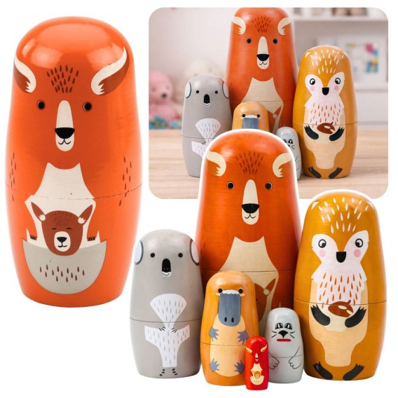6 elementów matrioszki zwierzęta