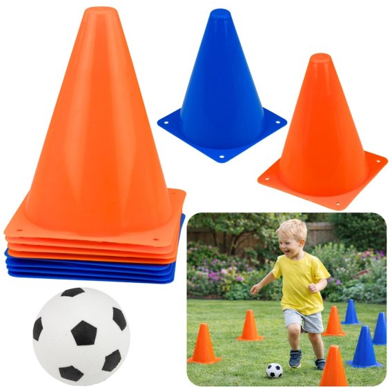 Zestaw pachołków treningowych z piłką to doskonała propozycja do aktywnej zabawy na świeżym powietrzu oraz w domu. Kolorowe elementy w intensywnych barwach pomarańczowej i niebieskiej zachęcają do ruchu i ułatwiają organizację różnorodnych ćwiczeń. Komplet sprawdzi się podczas zabaw ruchowych, treningów koordynacyjnych, mini torów przeszkód oraz pierwszych ćwiczeń piłkarskich.