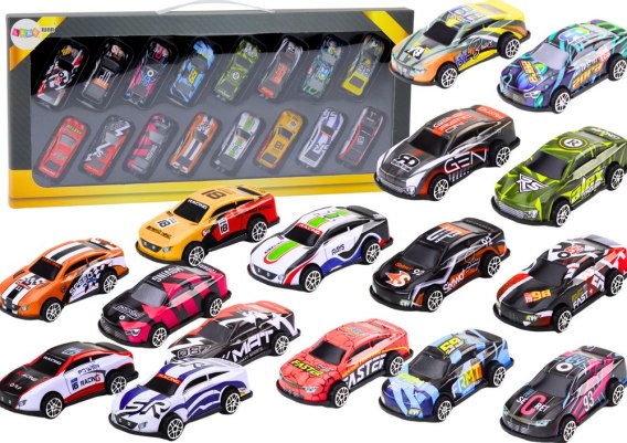 Zestaw resoraków zawiera 16 autek w różnych kolorach, idealnych do organizowania emocjonujących wyścigów. Każde autko jest starannie wykonane, trwałe i odporne na uszkodzenia. To świetna zabawa, rozwijająca kreatywność.