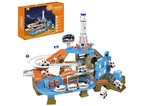 Wielopoziomowy tor samochodowy z rakietą,